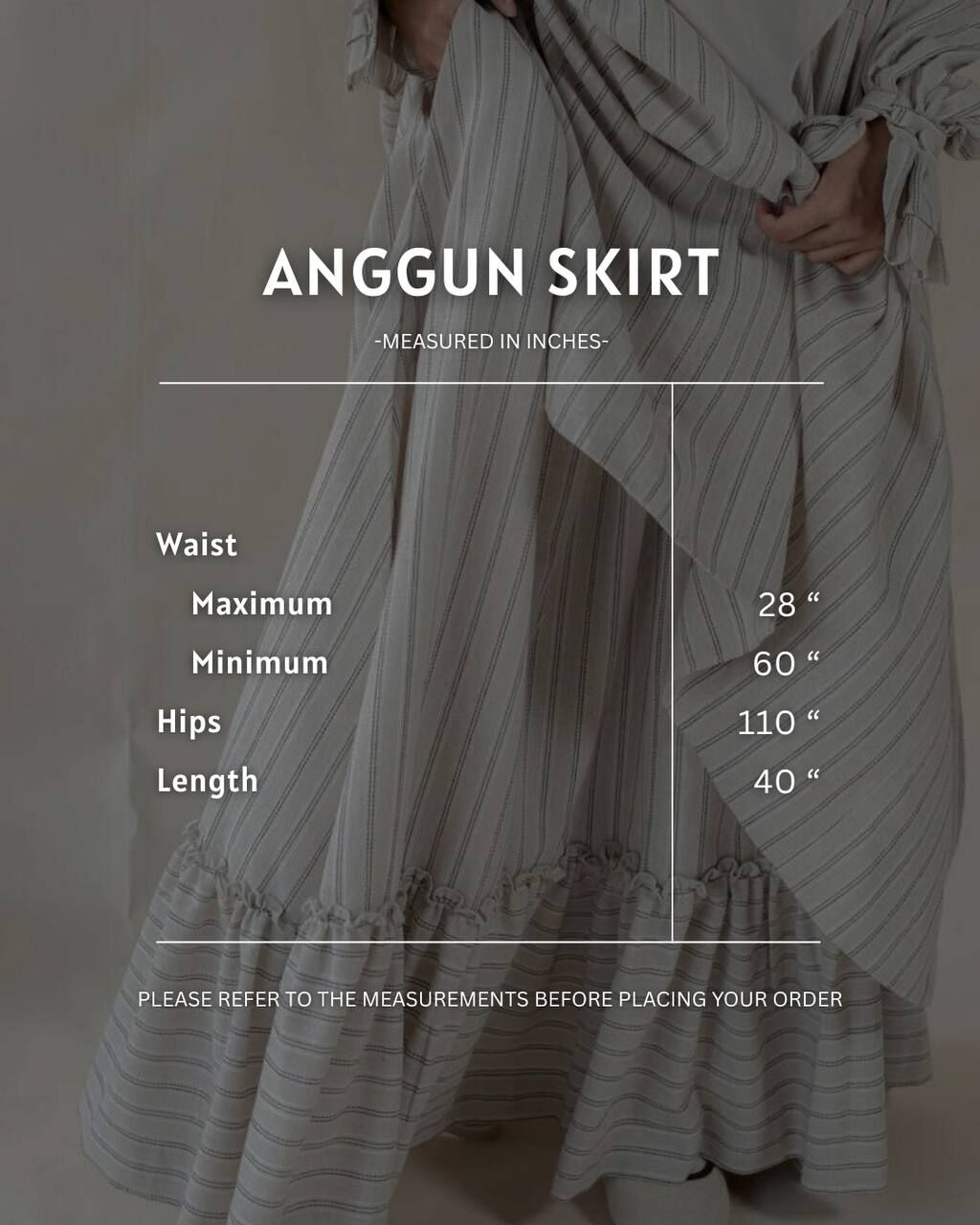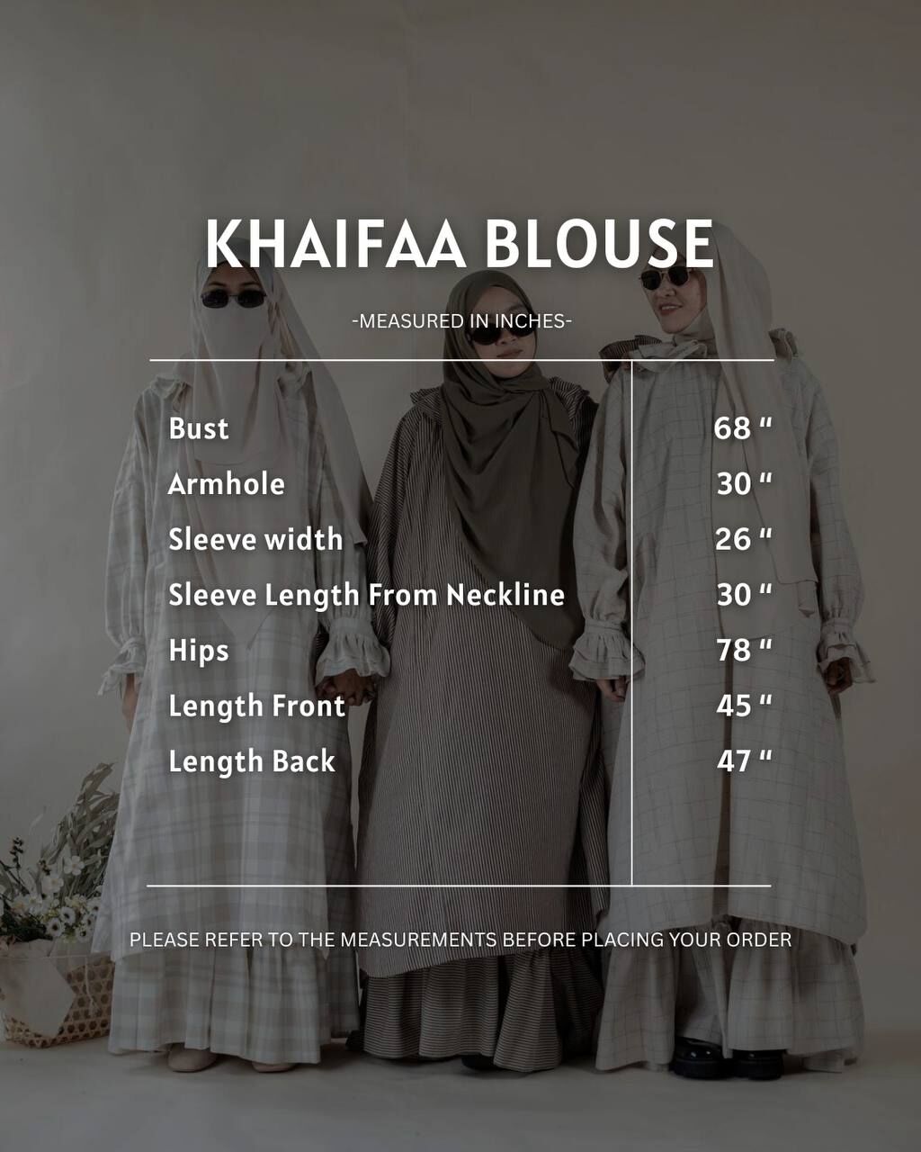 A modest, flowy and feminine ensemble crafted with soft details and breathable cotton linen. The Khaifaa Blouse brings an oversized, ruffled elegance, while the Anggun Skirt offers movement and charm with its pleated and ruffled design — creating a perfectly balanced, effortless look.